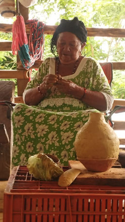 En el tercer encuentro que realizamos en la Reserva la Tigra, nos acompañó la familia Amuche, últimos alfareros Wayú de la Guajira. La abuela Maria Elena Pushaina, junto con su hijo Adolfo y su nieta Rebeca, trajeron un poco de su arcilla y experticia para compartir con todos nosotros. Junto con ellos, construimos vasijas, muñecas tradicionales Wayunkeras, y cuentas para collares, entre otras cosas. Adicionalmente, construimos un horno para acoger, facilitar, motivar e impulsar a las comunidades Kogui de la Sierra Nevada a seguir alimentando la tradición alfarera de su cultura.