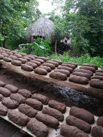 A lo largo de una semana, hicimos la mezcla de los adobes, nivelamos el lugar en donde se levantaría la estructura, armamos los bolillos de adobe y construimos un horno/hogar que transformará en cerámica las piezas que se realicen con la arcilla de la reserva.